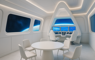 Un espace d’accueil équipé d’une machine à café, d’un micro-ondes, d’une table et de chaises pour vos petites pauses